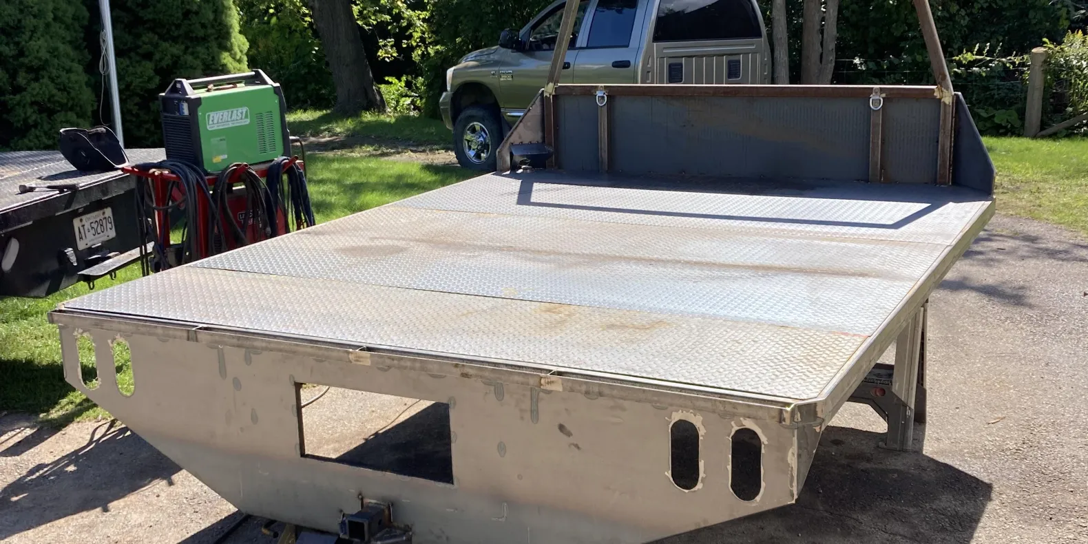 Need a slandered truck deck or need one custom made, talk to us and we will make it for you. This one was for my truck, 10x8ft to fit 2 sleds or the SXS. With space under the deck for ATV ramp and folding ramp for the sleds. We make as needed and do not have any in stock they are built to your needs. Don't need a deck to take tons of weight? And want a light weight deck we can do that. Under mount boxes, under light work lights, LED tail lights, 3rd brake lights, LED back up lights, and any other lighting opinations, deck mount winch, E track, sled decks. We can also paint match to truck or Line-X the bed.